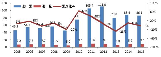 雖然中國機床需求總量在逐年萎縮,2015年金切機床進口💕額86.1億美元、同比微降2.6%,進口量9.1萬台、同比增長6%。 目前我國每年消費的中高檔數控機床的數量在5-6萬套左右,金額在60億元左右,其中進口量占到總量的85%左右。未來我國數控機床行業具有很好的發展潛力、進😁口替代的空間較大。 金切機床進口保持高位增長态勢 ,具體見下表,( 單位:億美元/萬台 )。